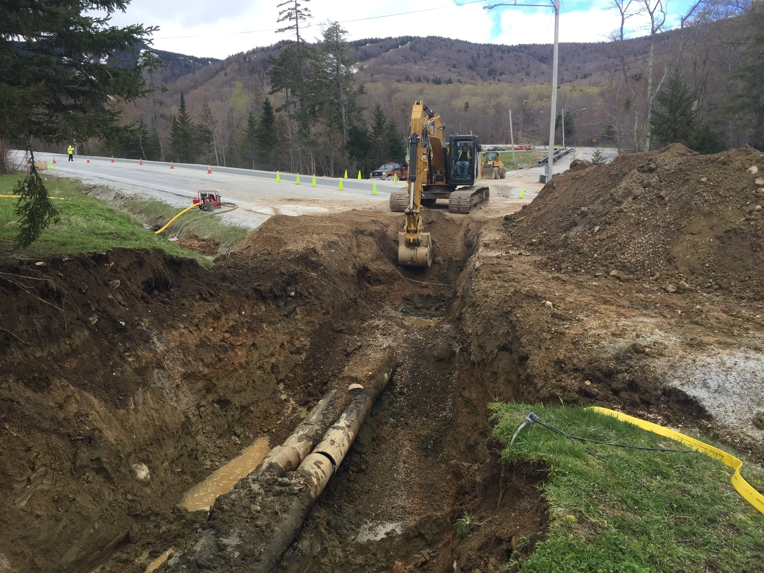 Contracted for this job in early August 2017, we finished in three weeks. The job required pipe replacement for snowmaking on a steep race trail. This was a very technical job, made challenging due to the steep grade of where we were working. Many employees with years of experience were required to complete this job. Greg Hiltz, Killington’s snowmaking supervisor, said he first worked with us in 1981 and because we do such good work he would absolutely hire us again. He kept his word: for the 2018 season G.W. Tatro was on the slopes of Killington from early summer to late fall!